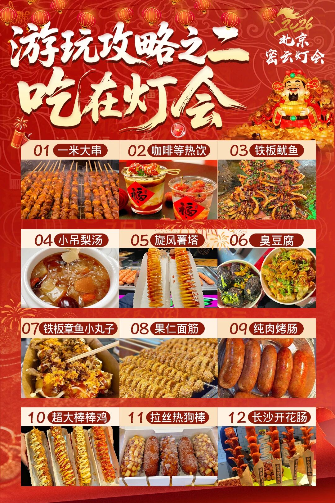 当大街小巷张灯结彩,当家家户户飘出团圆饭的香气,年的脚步,正欢腾着向我们奔来!这个春节,何必远行?密云的山水之间、古镇之内、乡村街巷,早已为您备好了一场年味十足、精彩纷呈的新春盛宴!从璀璨夺目的万千灯海,到烟火气十足的传统庙会;从长城脚下的冰雪童话,到原汁原味的民间花会。2026年春节,来密云,过个团圆、热闹、有滋有味的中国年!