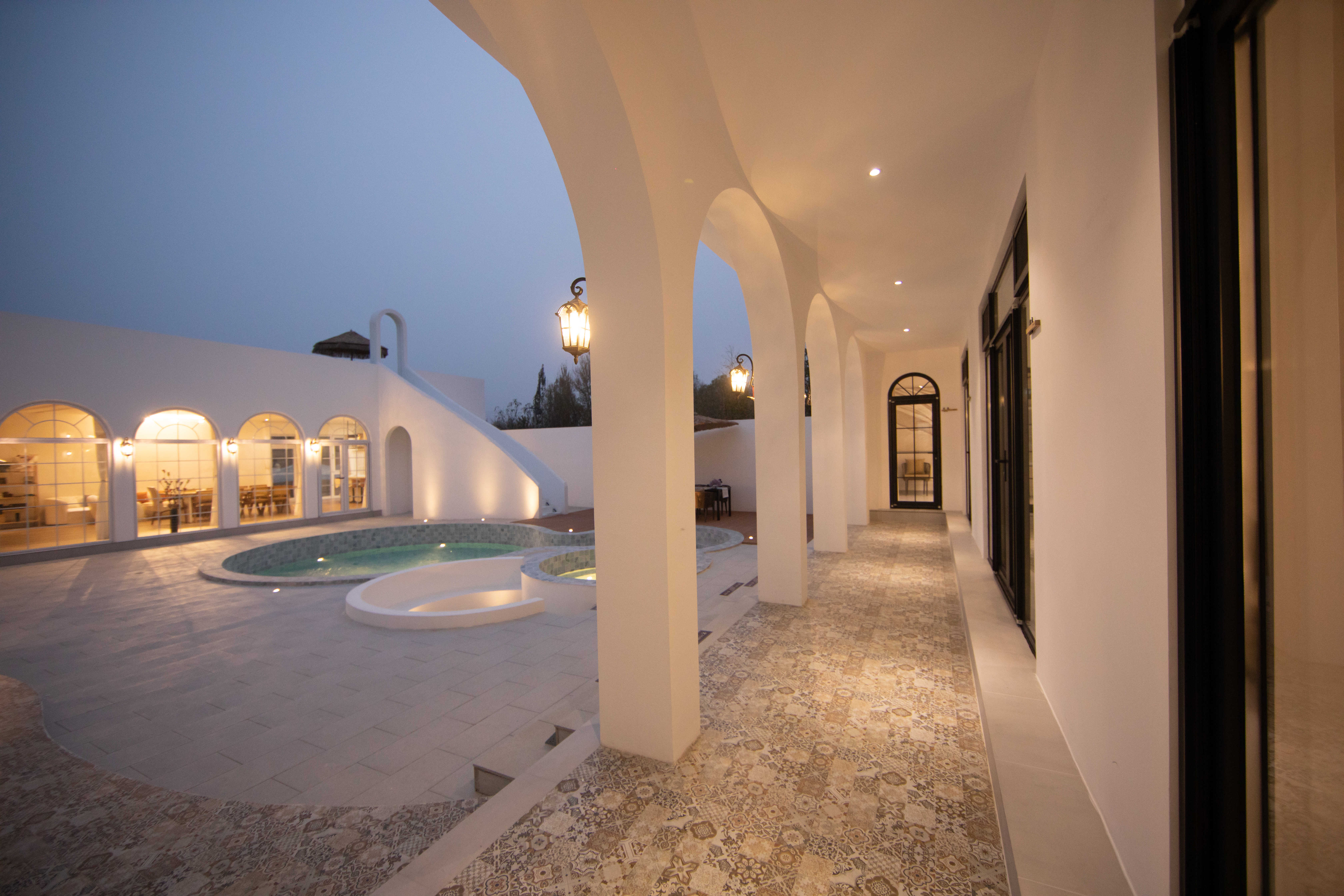 在这浪漫幽静的林间景色中,曼宿花间结合周边景色特点,与自然景观融合成一体,采用白色淡雅的色调,圆形拱形的建筑塑性,格子窗等浪漫元素设计,整体给人浪漫优雅,轻松舒适的感觉,让人置身在这美妙幽静的林间,舒适地享受慢下来的每一分时光。