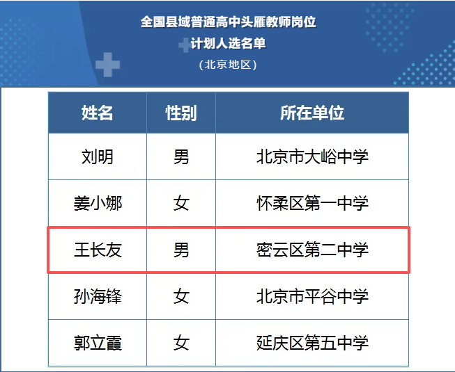 日前,教育部正式公布首批“全国县域普通高中头雁教师岗位计划”名单,密云区1名优秀教师成功入选,成为全国600位县域高中领军人才之一!