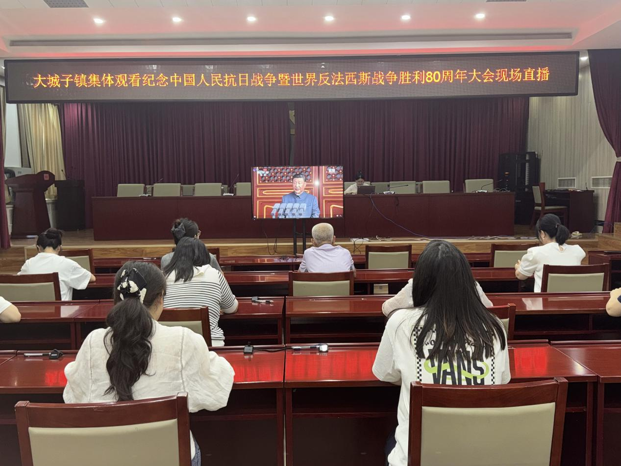 大城子镇开展纪念中国人民抗日战争暨世界反法西斯战争胜利80周年阅兵式集中观看活动