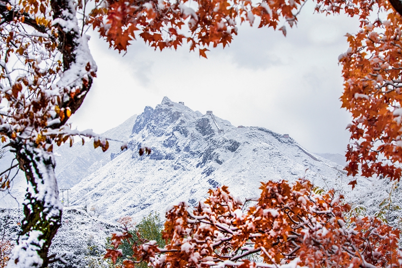 红叶冬雪伴卧虎