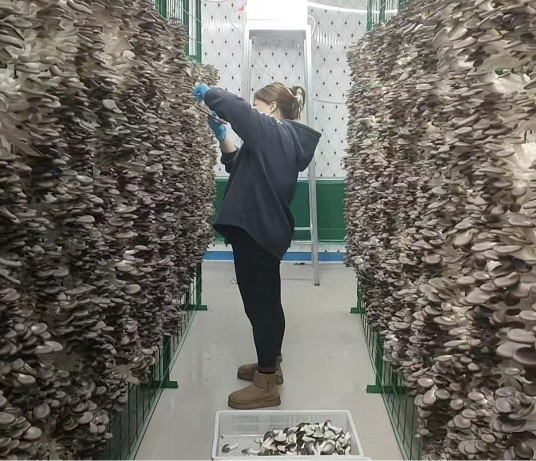 宓山纪农场智能种植舱内,农户正有序开展采摘、分拣作业,采收的鲜菇直接存入兼具种植与存储功能的移动冷库,确保产品品质稳定。种植过程中采用环境精准调控技术:种植舱配备多维度传感器,24小时实时监测温度、湿度、CO₂浓度等参数,后台系统自动调节设备运行,为秀珍菇提供恒定生长环境。该模式突破了季节与地域限制,实现秀珍菇反季节栽培与“南菌北种”,种植效率较传统模式明显提升,达成了菌菇产量与品质的双重保障。