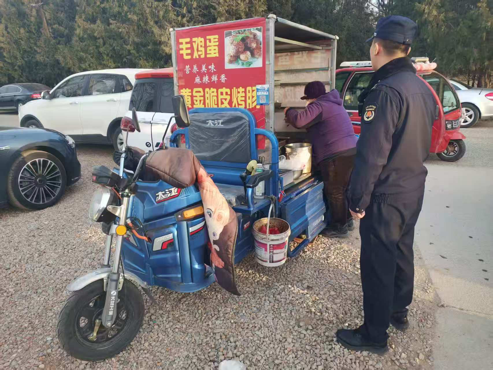 此次巡查重点针对校园周边流动摊贩占道经营、售卖“三无”食品等突出问题。工作人员沿着学校周边主次干道、校门口两侧商铺等重点区域,进行详细巡查,对发现的售卖烤肠、煎饼、散装蔬菜等流动摊贩,采取“先劝导、后规范”的柔性执法方式,耐心向摊贩讲解食品安全相关法律法规及占道经营的安全隐患,引导其自觉撤离校园周边管控区域。同时,工作人员仔细查验部分食品的来源渠道、储存条件,向过往学生和家长普及食品安全常识,提醒大家远离无资质流动摊贩售卖的食品,提升自我保护意识。