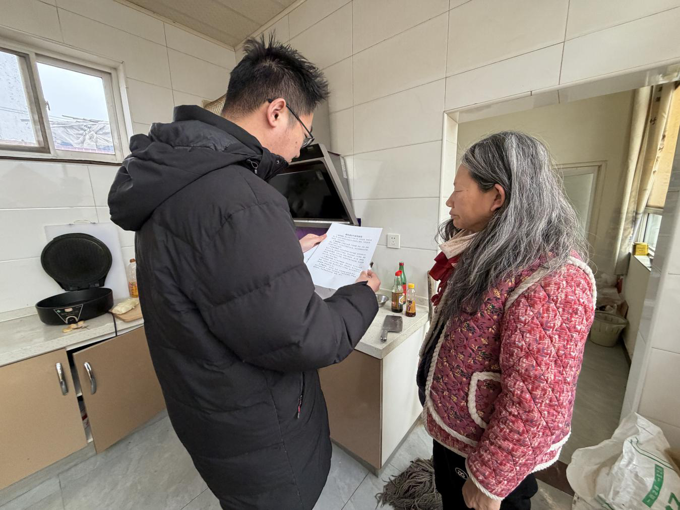排查工作中,镇平安建设办公室工作人员严格落实工作要求,压紧压实村级主体责任,向各村传达燃气安全工作部署,督促各村对照隐患清单逐户上门核查,做到不漏一户、不落一项。工作人员同步开展安全宣传与劝导,向村民普及规范用气、隐患识别、应急处置等安全知识,切实提升群众安全防范意识与自我保护能力,全力从源头防范安全事故发生。