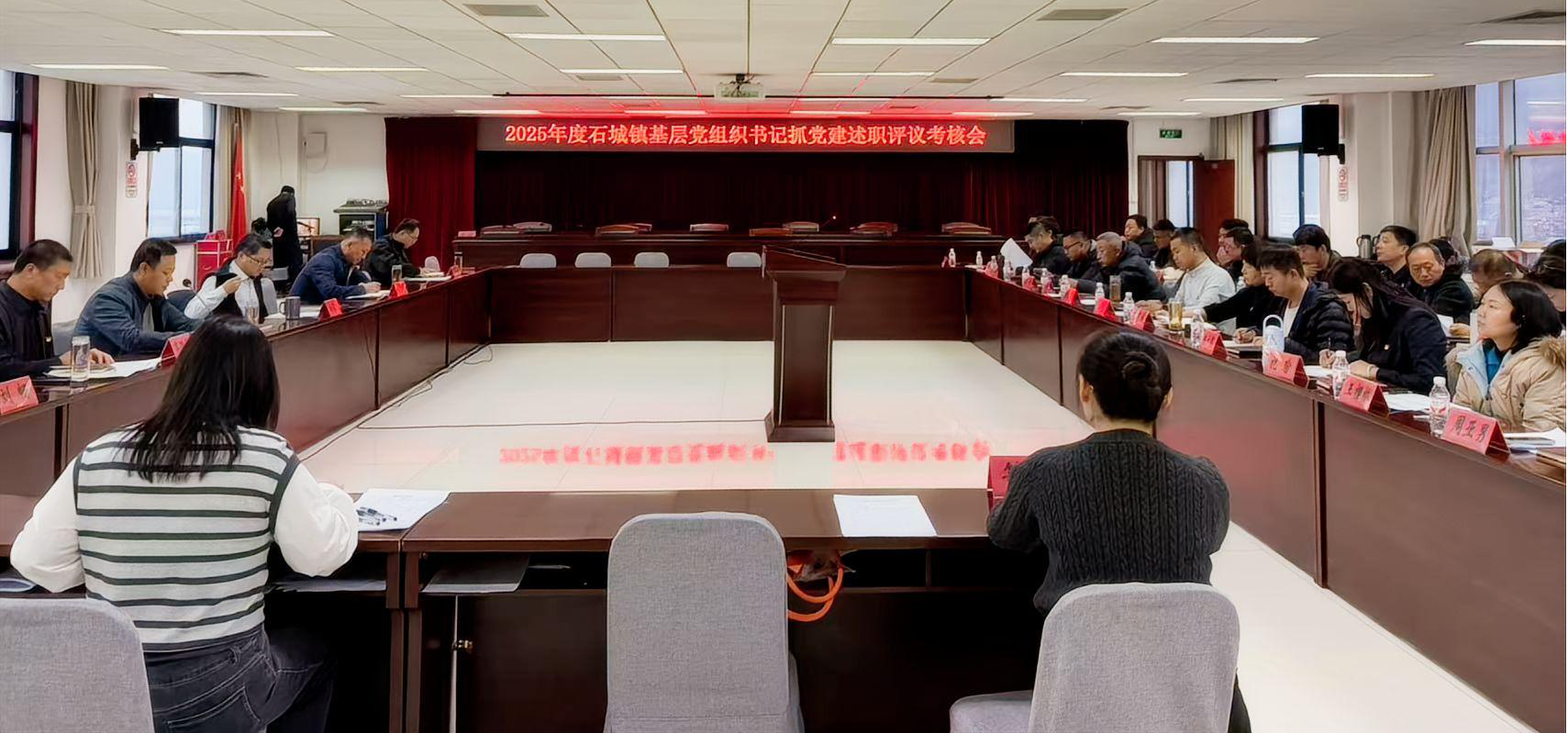 2月28日,石城镇召开2025年度基层党组织书记抓党建述职评议考核会。镇领导班子成员,各基层党组织书记,各科室负责人参加会议。镇党委副书记王健主持。