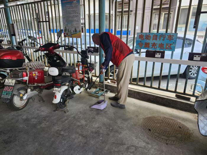 在博世庄园、海怡庄园社区,居委会与社区物业联合行动,他们手持扫帚、垃圾袋、抹布等工具,按照事先规划好的区域和分工,迅速投入垃圾清扫工作中。有清扫落叶的,有打包垃圾的,大家忙得不亦乐乎。两委干部和志愿者们还将随意停放的自行车、电动车逐一归位,确保公共通道畅通无阻,同时,还用抹布细心擦拭楼梯扶手、公告栏、健身器材等公共设施,使其焕然一新。