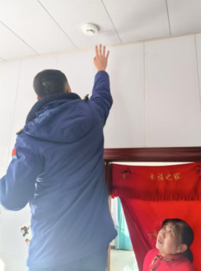 培训会后,市消防总队来我镇对重点关爱人群安装联网烟感报警器情况开展检查指导。