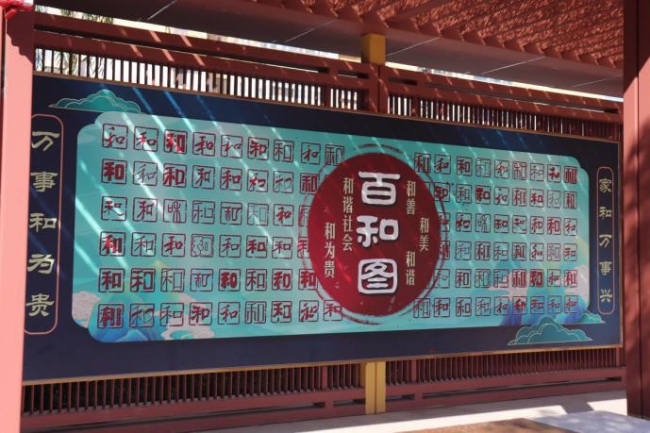 为了提升小区居民的整体素养,街道积极研究探索以“和谐”为主题,提升改造宾阳西里社区文化广场。改造后的文化广场规划设置了文化长廊,加装的百和图背景墙用不同字体的“和”字展示了汉字的魅力、28块宣传橱窗讲述了中国历史上的和谐小故事、十二生肖雕塑和园林中的景观置石体现了传统文化的朴素审美表达。许多居民在陪伴孩子休闲娱乐的同时轻声念诵,感受中华传统文化的熏陶,耳濡目染间培养良好道德情操。