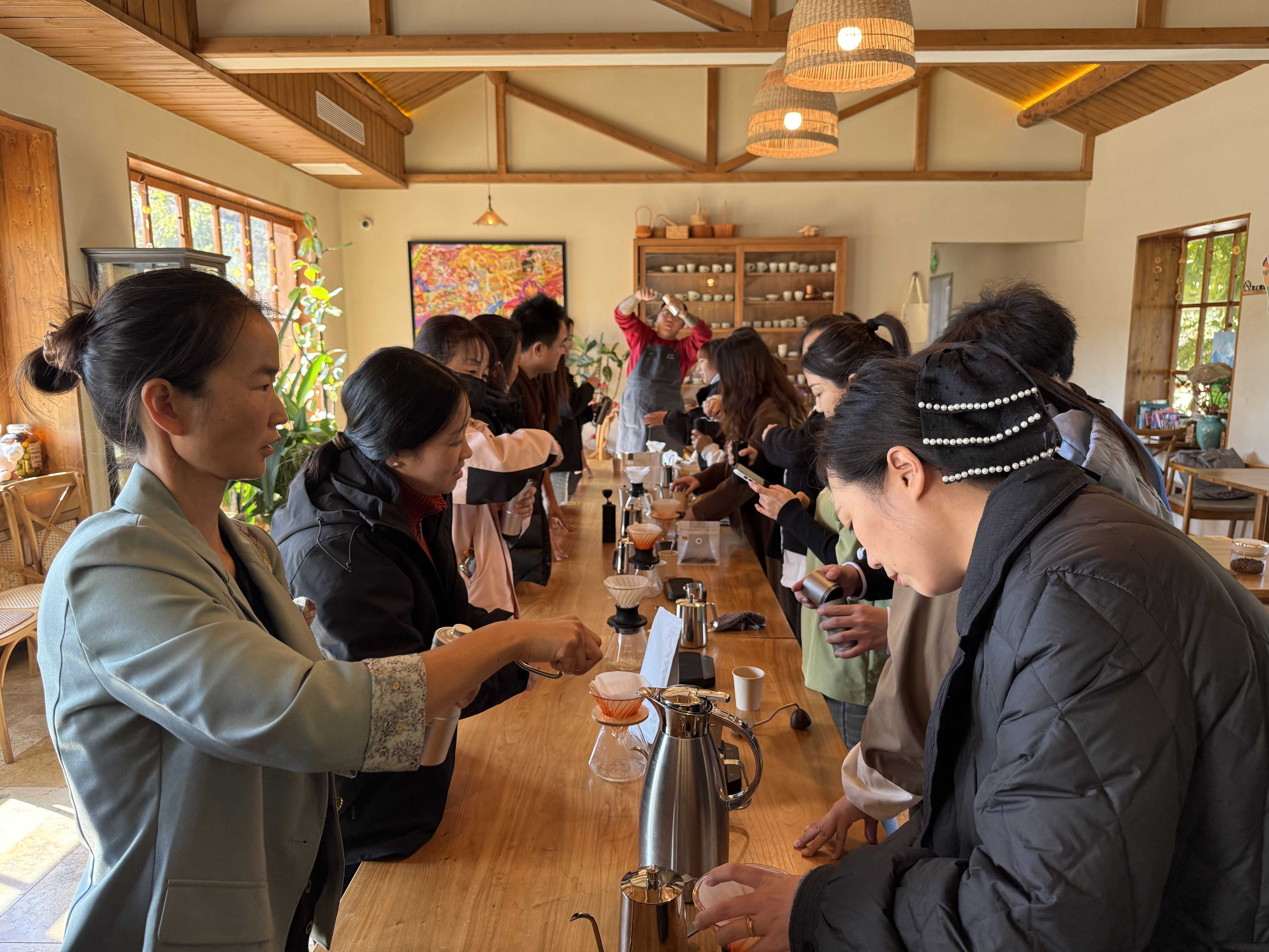 培训邀请了中国咖啡师职业技能大赛评审马皓月、pac冲煮专业级老师曹凌枫等业内顶尖咖啡专家担任讲师,紧扣民宿实际需求,系统讲解了咖啡起源、处理方式及常见器具认知等基础知识,并结合密云乡村旅游特色,分享了咖啡与民宿场景融合的案例。实操环节聚焦意式咖啡制作、拿铁拉花艺术及手冲咖啡冲煮技巧,进行分组操作及指导,确保每位学员的咖啡制作技能进一步提升。培训过程中,学员们热情高涨,现场学习氛围浓厚。