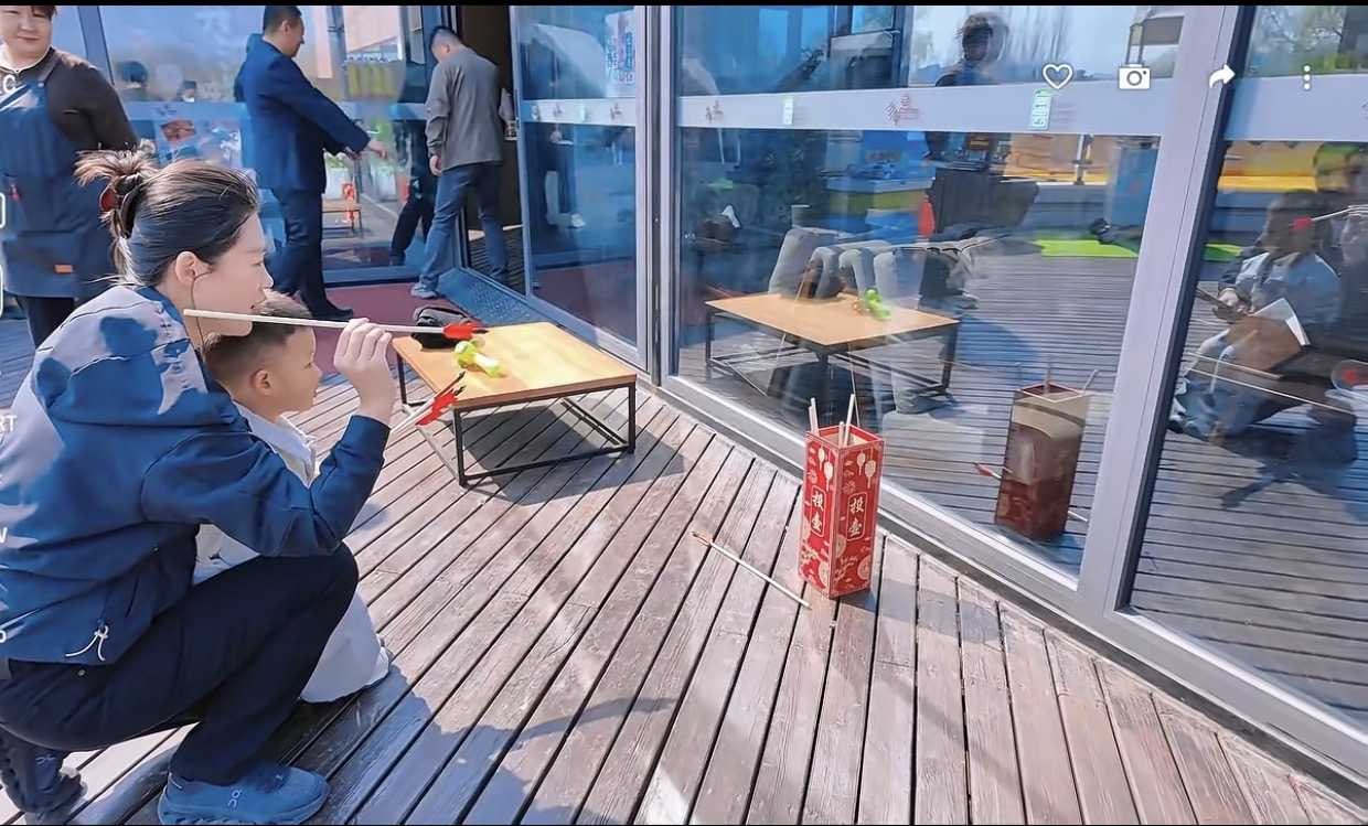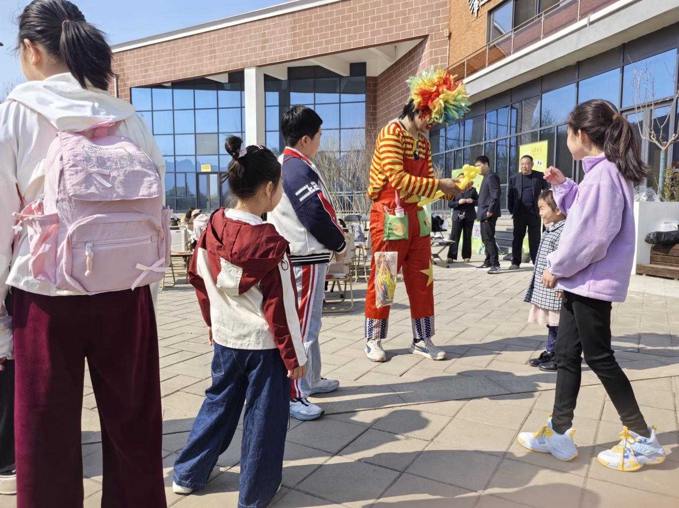 亲子游戏大小朋友轮番上阵,玩得不亦乐乎。孩子们排队领取小花剑、魔法棒、气球等礼品,笑脸比春花还灿烂。