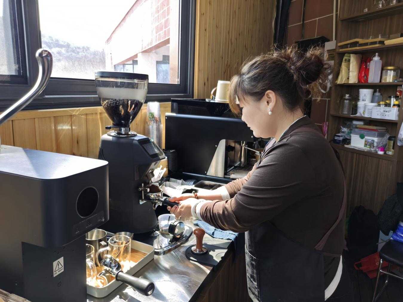 二层的水库咖啡店里,座无虚席。手冲咖啡香气袅袅,窗外就是白河春色。