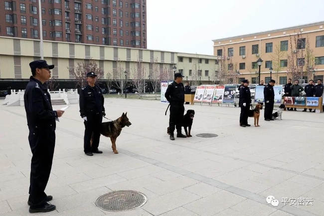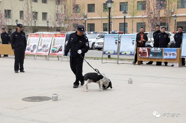 “坐”“卧”“打个招呼”,警犬们正秀身姿,一出现就惊艳了全场,大家亲切的与他互动。现场向群众展示了警犬模拟实战训练场景,鉴别罐搜索。