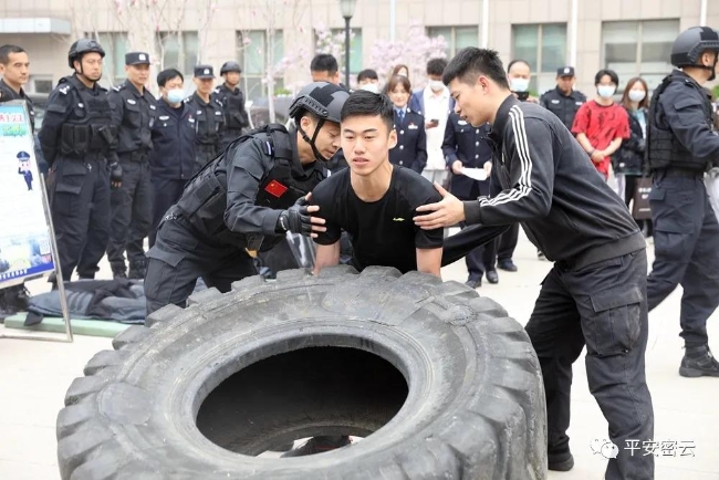 在民警向群众讲解要领后,群众开始试着翻动轮胎。群众体体验后,不仅考验参与者的体力更是对协调能力的检验。