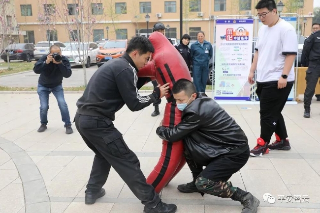 与观看枪械和装备的好奇和新鲜感相比,模拟演练、警犬训练等表演科目,不时赢得在场群众的阵阵掌声。特警队员们的默契配合、高难度的擒拿动作以及真刀真枪的实弹演练让群众在惊叹的同时,纷纷拿出手机和相机拍摄。