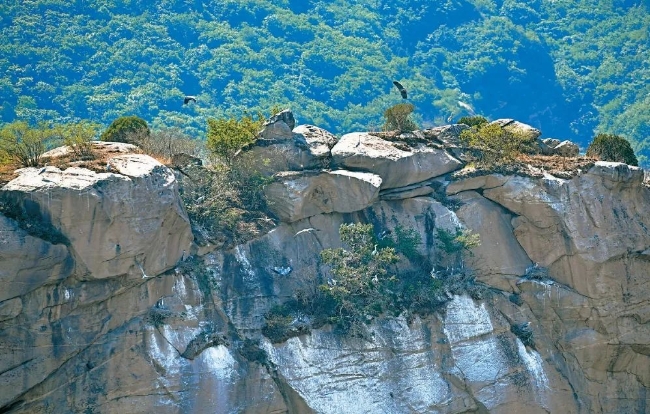白河峡谷内多处崖壁几乎垂直于地面,成为鸟类理想的栖息地。