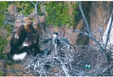 摄像头监测到国家一级保护动物金雕抓走两只苍鹭雏鸟。