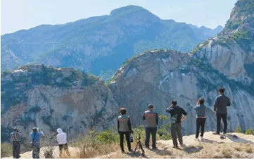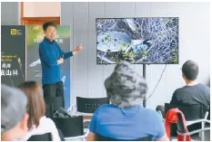 观鸟爱好者爬上河对岸的山顶拍摄苍鹭,他们日常拍到的鸟类信息也纳入监测数据系统。