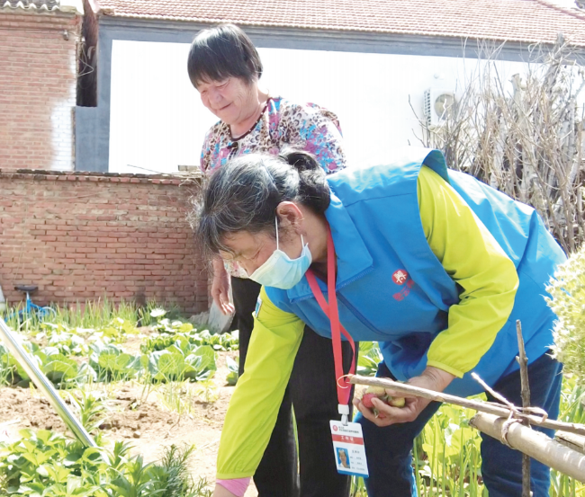 李玉军把不大的小院收拾得井井有条,小院里种了大葱、蒜、豆角、茄子、西葫芦、生菜、菜花等蔬菜,长势喜人。量完血压后,沈翠珍就跟李玉军一起给蔬菜浇水、拔杂草。“我一个人住,平日里血压、血糖有些不稳定,就得辛苦咱村的邻里互助员多盯着。翠珍每次来看我,甭管我在干啥活儿,都直接抢过去帮我干,这是把我当老姐姐一样照顾啊。”李玉军说。