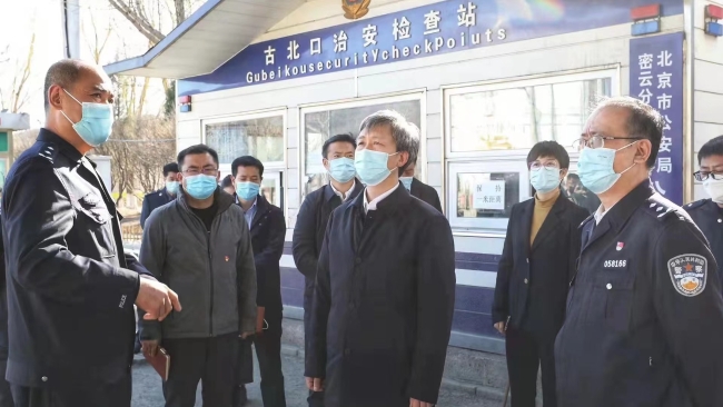 古北口镇与河北省滦平县相邻,是北京市的东北门户。余卫国先后来到京承高速古北口进京检查站和古北口治安检查站,详细了解进京通道查控情况,对各环节疫情防控措施落实情况进行深入检查。