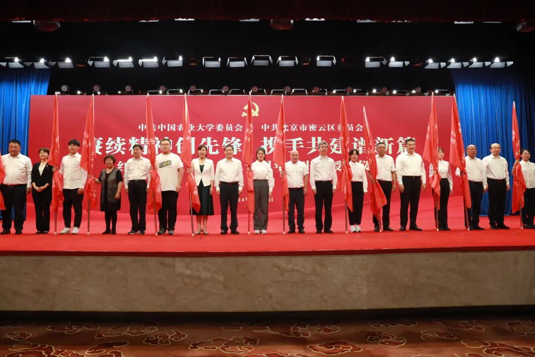 新一轮共建合作,中国农业大学10个优秀研究生党支部与密云区10个村党支部将开展共建。同时,中国农业大学10个机关单位、学院将与密云区10个机关单位、相关镇结成“1+1”共建对子。与会领导为共建村党支部和中国农业大学研究生党支部授旗。