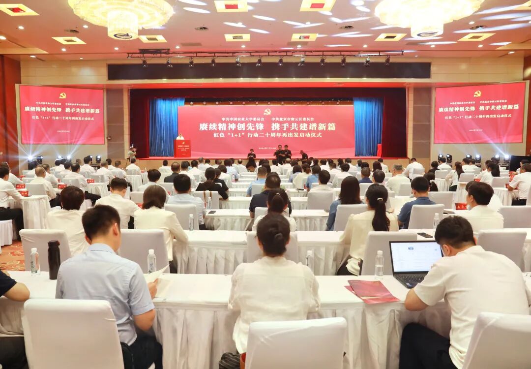 密云区委副书记、区长于海波,北京市委教育工委副书记王达品,北京市委农工委委员、市农业农村局副局长张士功分别在仪式上致辞。首批密云挂职博士、共建单位代表等作交流发言。中国农业大学党委与密云区委签订红色“1+1”行动二十周年再出发合作备忘录。