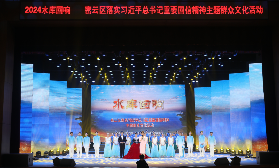 8月30日,在习近平总书记给建设和守护密云水库的乡亲们回信四周年之际,由中共密云区委宣传部、密云区文化和旅游局主办、北京广播电视台承办的《2024水库回响——密云区落实习近平总书记重要回信精神主题群众文化活动》在密云大剧院隆重举行。区委书记余卫国,区委副书记、区长于海波,区政协主席席成坡,区委副书记于建华,市文联原副主席马从峰,市文旅局二级巡视员常林出席活动,与密云群众代表一起回顾了建设和守护密云水库的动人篇章,共同展望密云保水保生态、绿色高质量发展的美好未来。