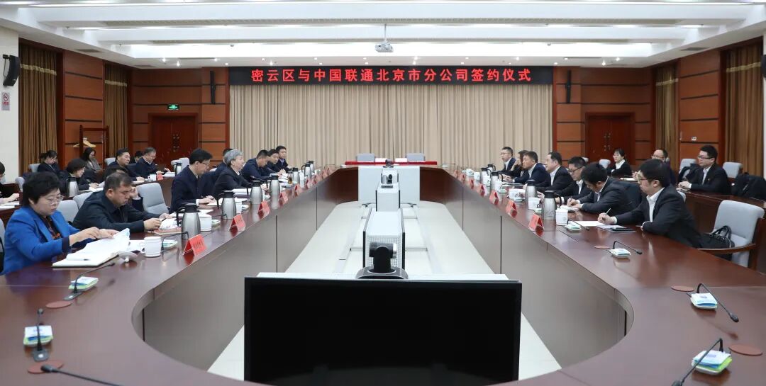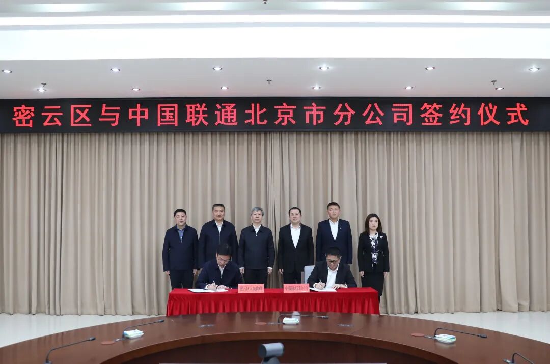 副区长施辉阳与中国联通北京市分公司副总经理冯兰晓代表密云区人民政府和中国联合网络通信有限公司北京市分公司签署协议。密云区、中国联通北京市分公司有关领导一同参加。