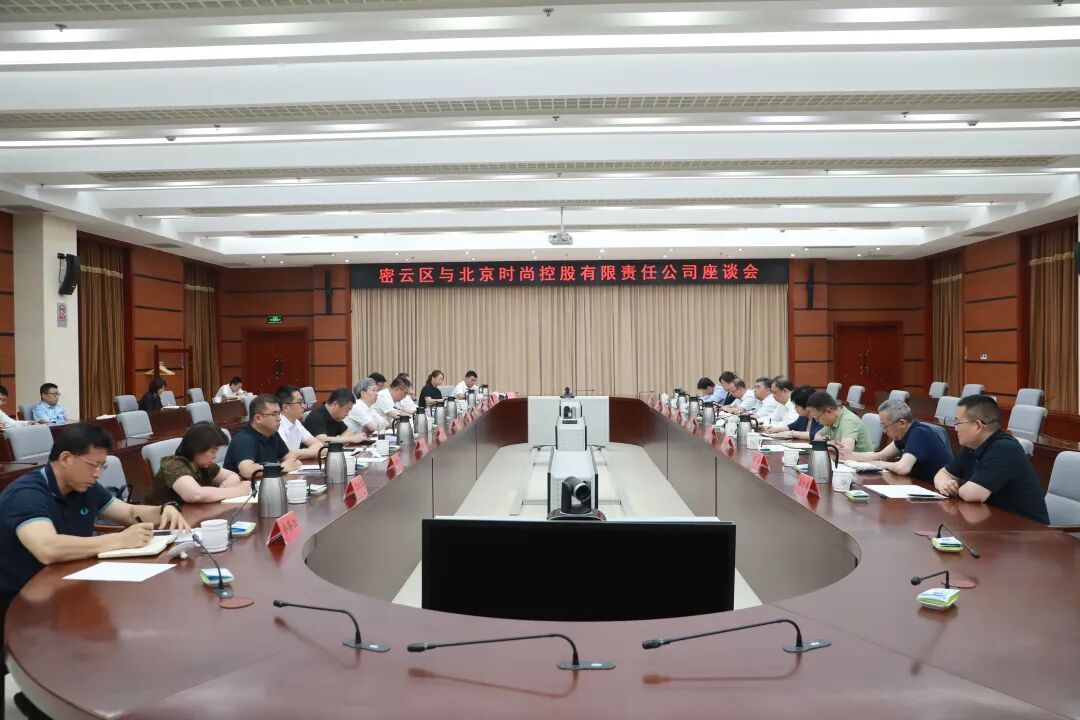 6月5日下午,密云区委书记余卫国,区委副书记、区长于海波会见北京时尚控股有限责任公司党委书记、董事长顾伟达,党委副书记、董事、总经理刘常峰一行,双方围绕项目推进、加强合作等进行了深入交流。