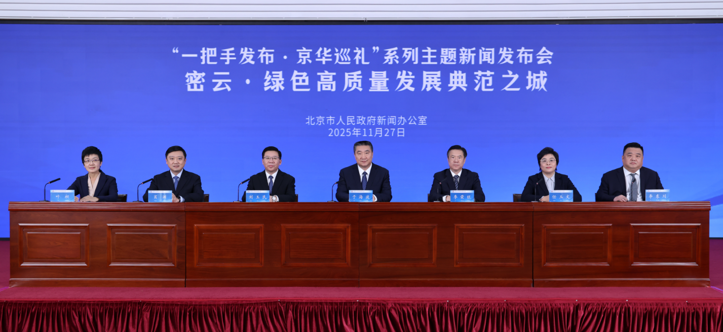 ▲11月27日下午,北京市人民政府新闻办公室举行“一把手发布·京华巡礼”系列主题新闻发布会——密云·绿色高质量发展典范之城。密云区政府主要负责同志带队出席发布会介绍情况并回答记者提问。北京市委宣传部对外新闻处处长叶昶主持。