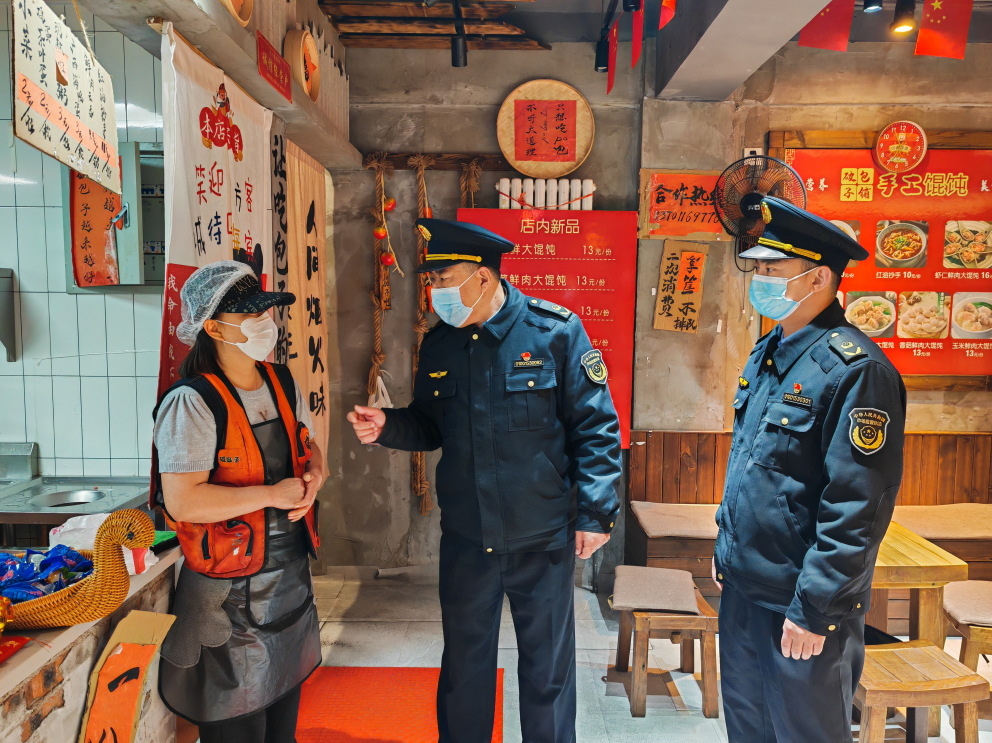 卫生死角有没有?三防设施到位没?洗菜池、砧板有没有生熟分开?食品添加剂用没用、怎么用?执法人员拿着“放大镜”找问题,还顺手上“阳光餐饮App”查了查,“日管控、周排查、月调度”必须要打卡。
