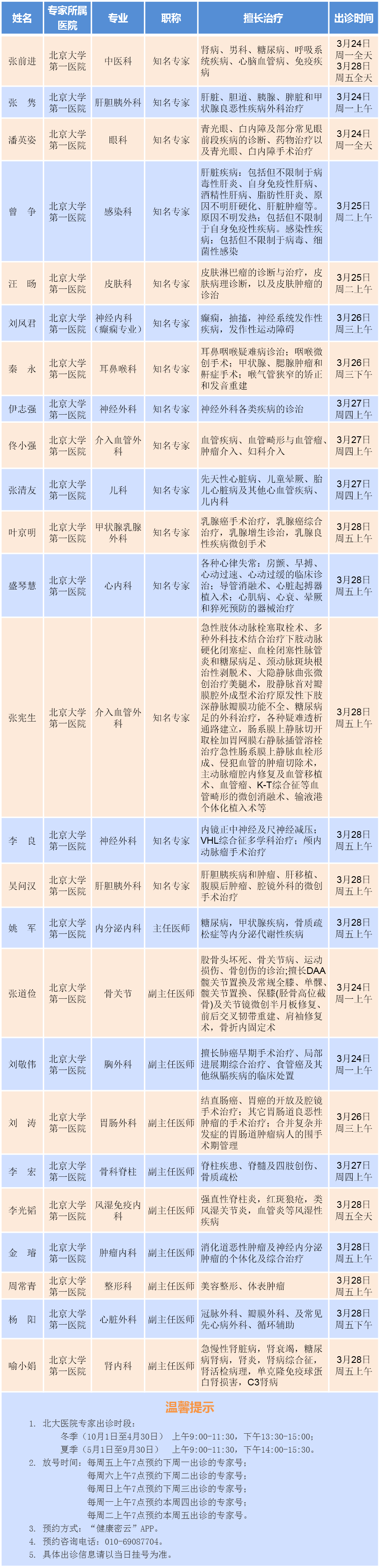 北京大学第一医院专家密云医院出诊安排(2025.3.24-3.30)