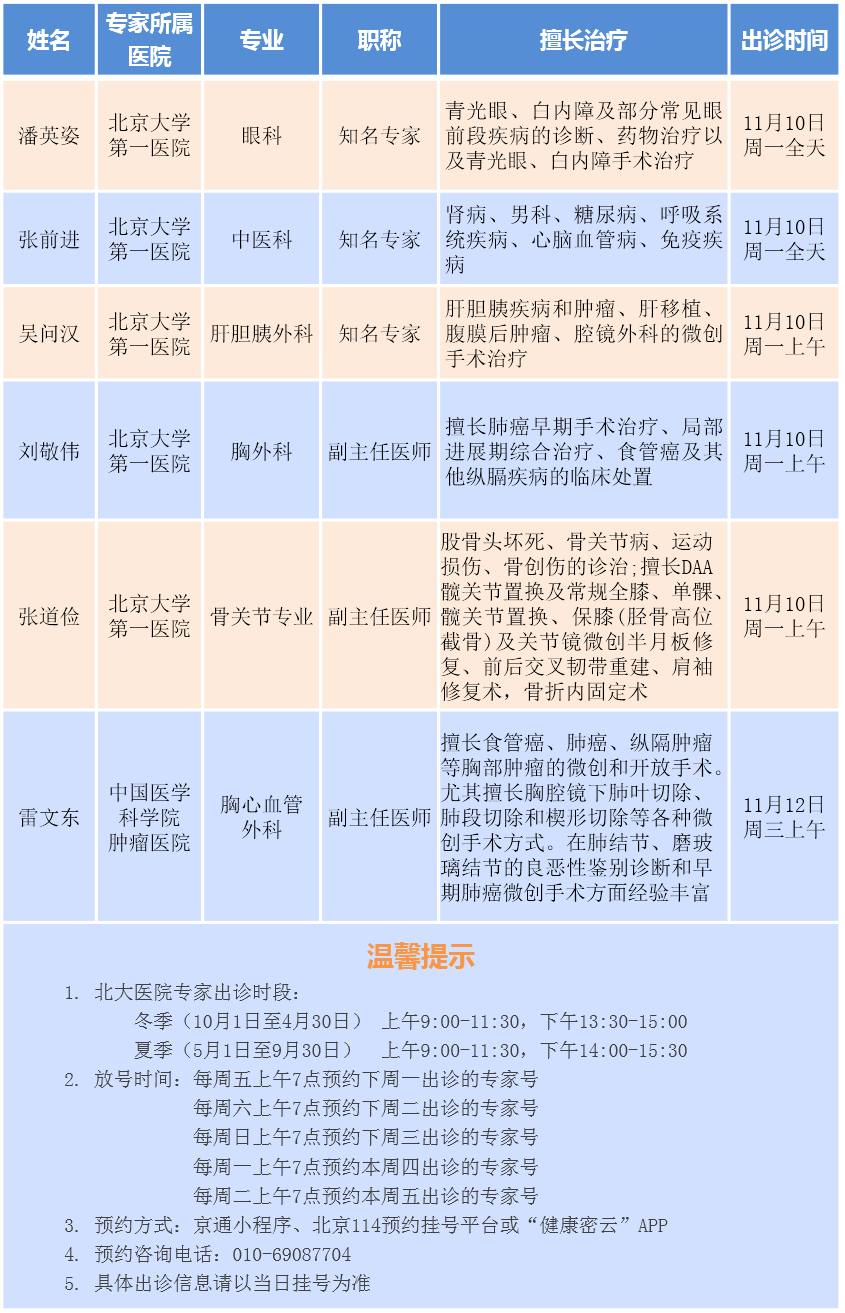 北京大学第一医院专家密云医院出诊安排(2025.11.10-11.16)