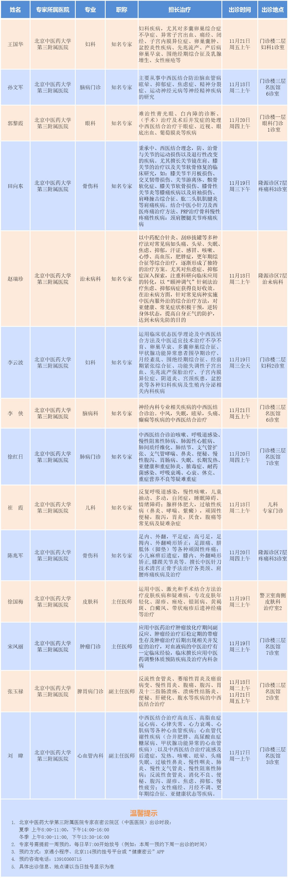 北京中医药大学第三附属医院专家密云院区出诊安排(2025.11.17-11.23)