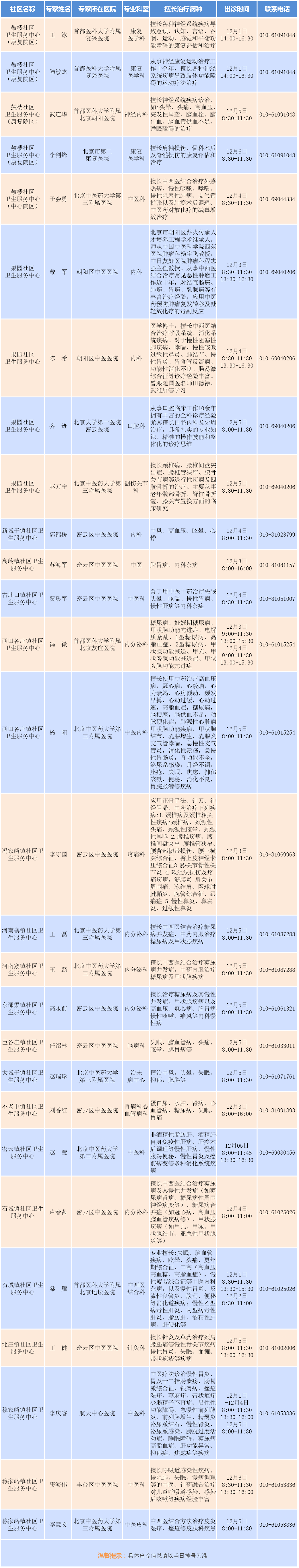专家支援社区出诊安排(2025.12.1-12.7)