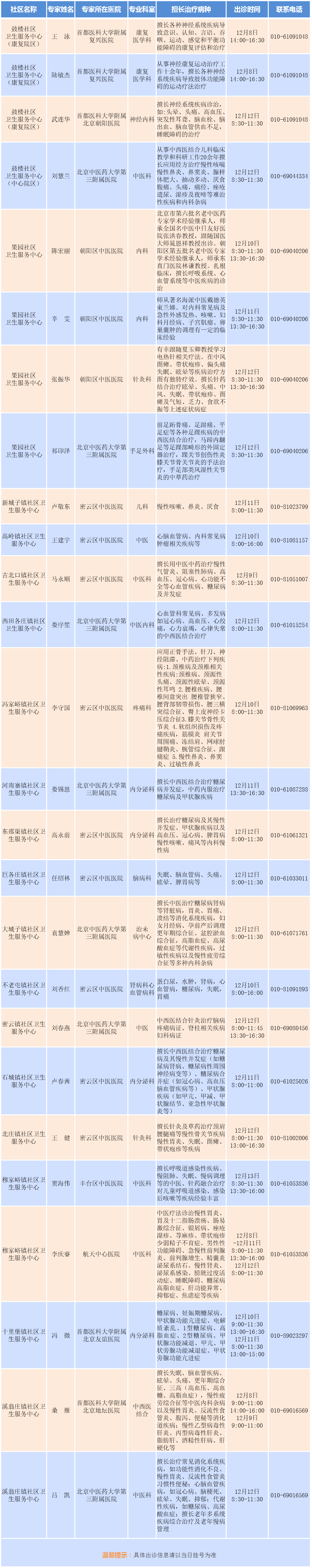 专家支援社区出诊安排(2025.12.8-12.14)