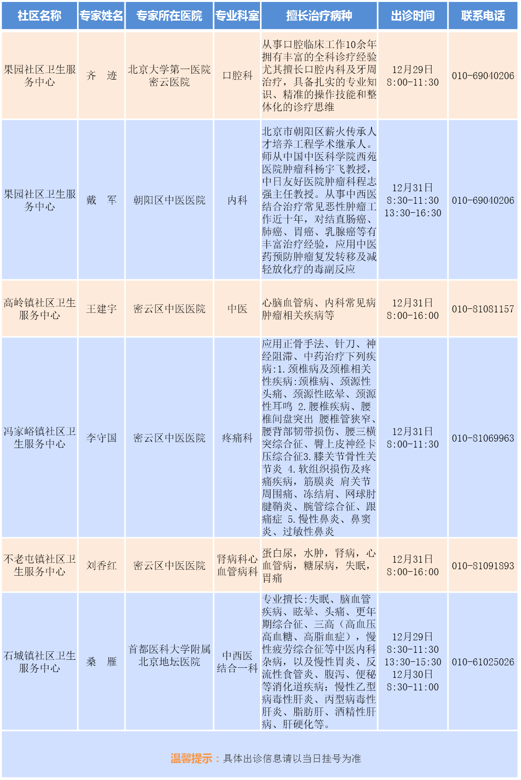 专家支援社区出诊安排(2025.12.29-2026.1.4)