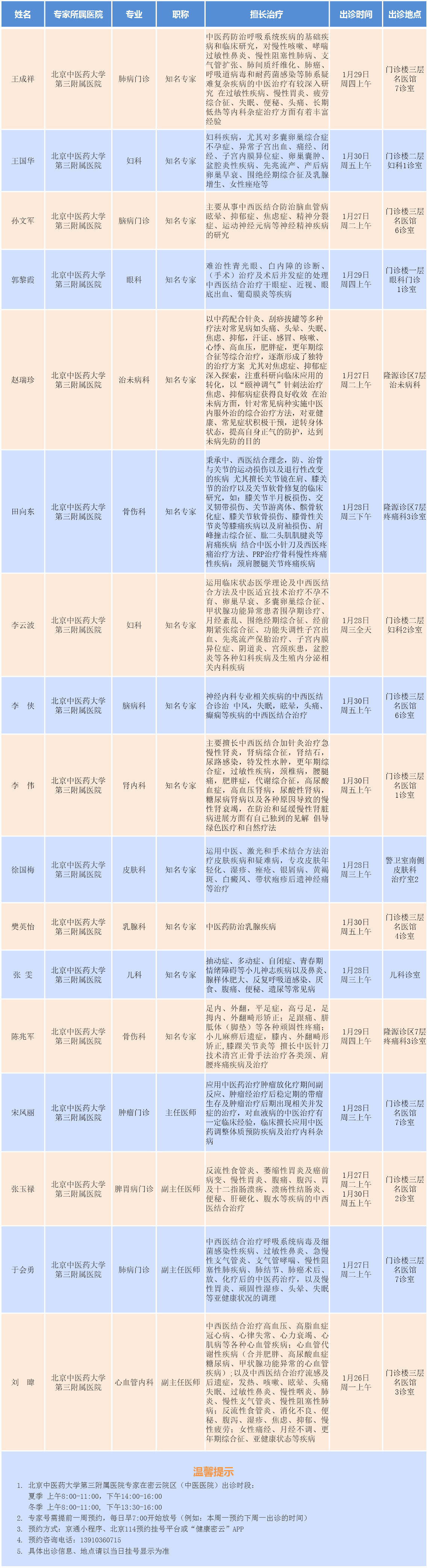 北京中医药大学第三附属医院专家密云院区出诊安排(2026.1.26-2.1)