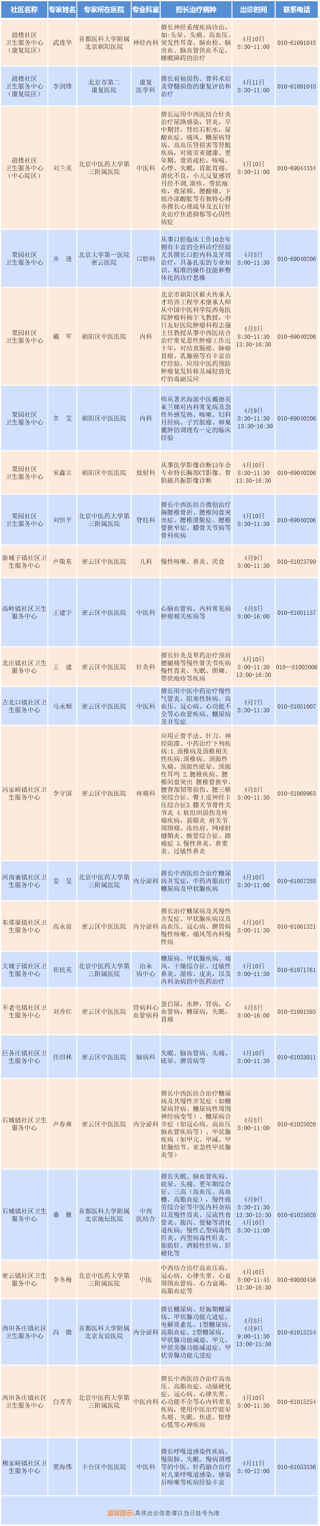 专家支援社区出诊安排(2026.4.6-2026.4.12)