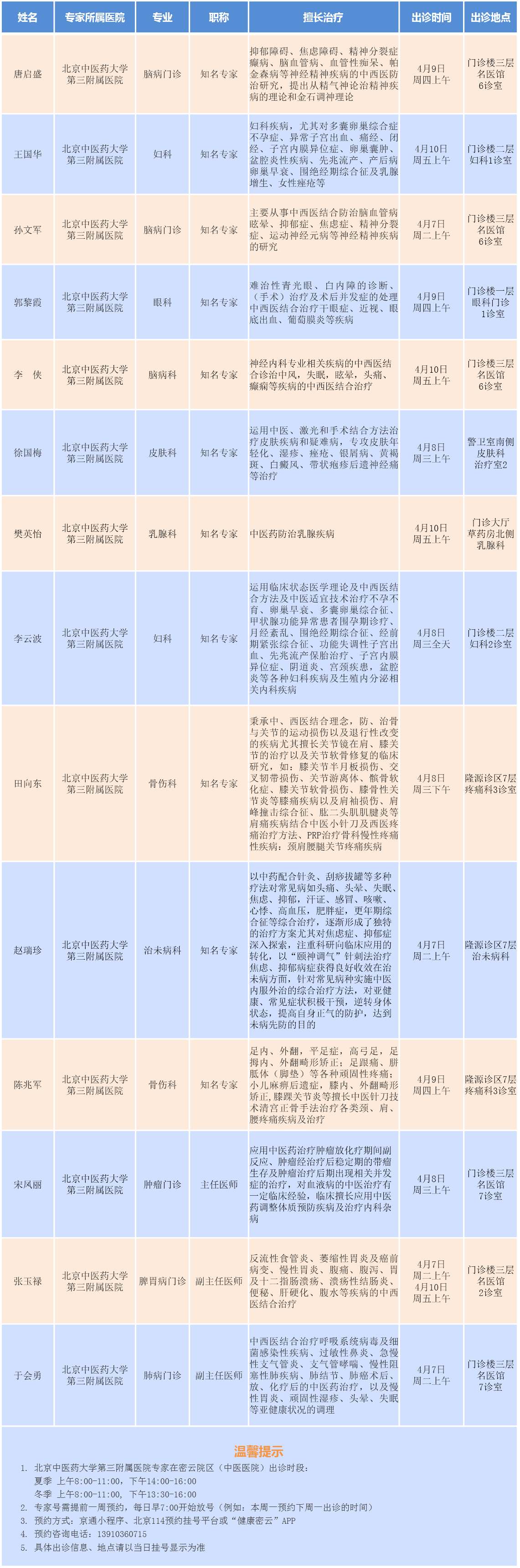 北京中医药大学第三附属医院专家密云院区出诊安排(2026.4.6-2026.4.12)