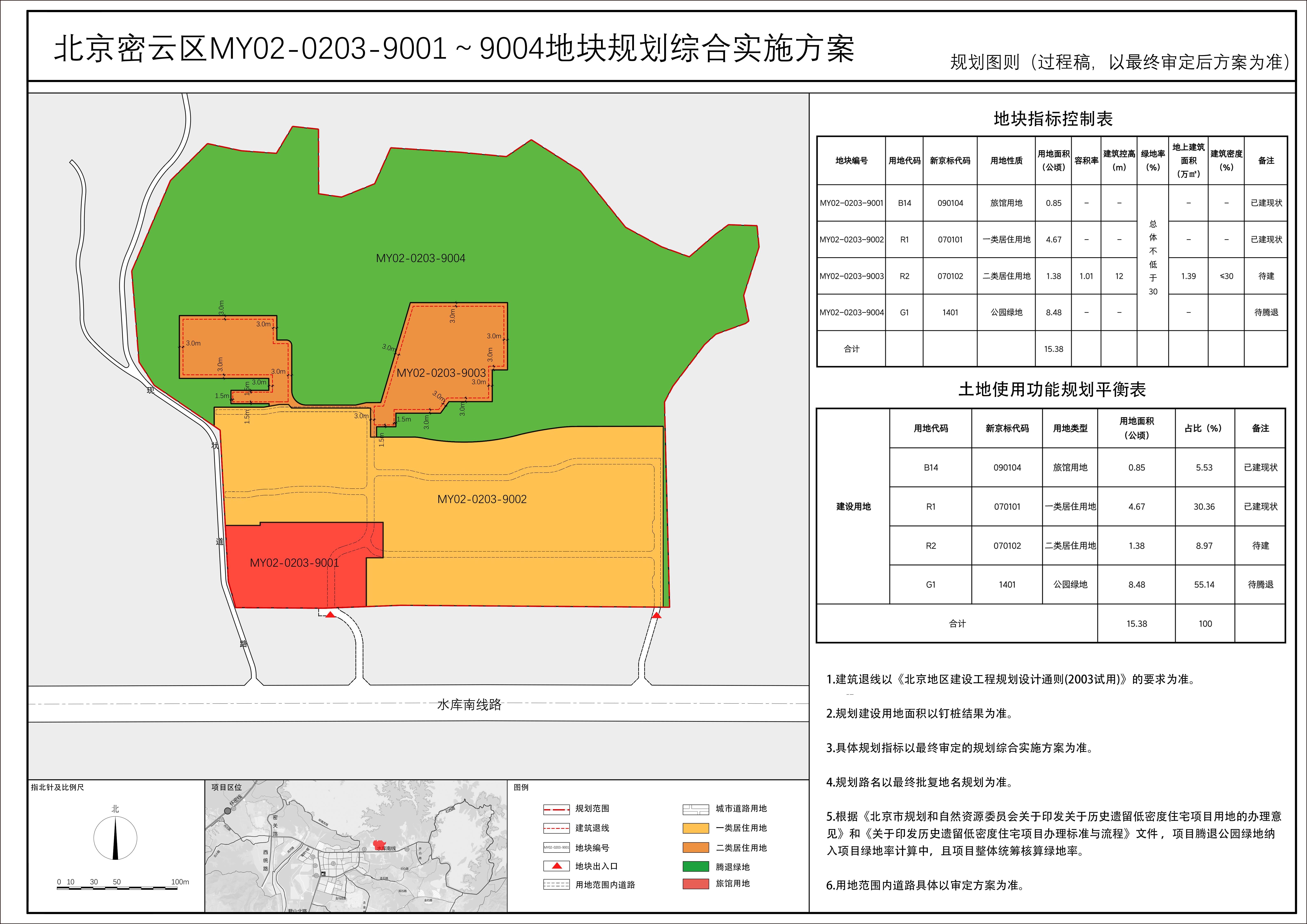 指标控制:一类居住用地9002地块为现状已建;二类居住用地9003地块(待建地块)地上建筑规模不大于1.39万平方米,建筑密度不大于30%,建筑控高12米;旅馆用地9001地块为现状已建。上述具体指标以审定后规划综合实施方案为准。