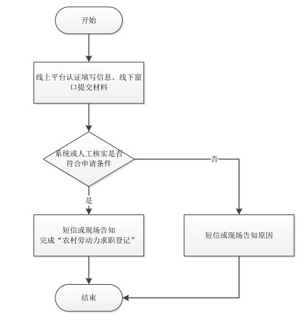 设定依据:【政府规章】北京市人民政府《北京市人民政府贯彻落实国务院关于进一步加强就业再就业工作文件的通知》(京政发〔2006〕4号)三、建立覆盖全市城乡统一的就业服务体系,促进本市农村劳动力转移就业(-)建立健全农村劳动力转移就业登记制度。凡具有本市农业户口男16周岁至59周岁,女16周岁至49周岁,有劳动能力且要求在二、三产业就业的人员,可到乡镇社保所或行政村就业服务站进行求职登记和就业登记,纳入全市城乡统一的就业管理服务体系。【其他规范性文件】北京市劳动和社会保障局《关于印发<北京市农村劳动力转移就业管理办法>的通知》(京劳社就发〔2006〕86号)第五条 农村劳动力可直接或通过村级就业服务组织到户口所在地的乡镇社会保障事务所进行求职登记,申领《北京市农村劳动力转移就业证》(以下简称《转移就业证》),建立《北京市农村劳动力转移就业档案》(以下简称《转移就业档案》)。 第六条 农村劳动力办理求职登记须提交以下材料: ㈠ 本人身份证、户口簿; ㈡ 近期免冠一寸照片2张; ㈢ 最高学历证明及复印件; ㈣ 具有相关职业技能的提交《中华人民共和国职业资格证书》、《北京市技能培训结业证书》等职业技能证书; ㈤ 享受本市农村居民最低生活保障待遇的提交《农村居民最低生活保障金领取证》。 第七条 乡镇社会保障事务所为求职登记的农村劳动力免费发放《转移就业证》,并为其建立《转移就业档案》。 第八条 农村劳动力持《转移就业证》可在各级公共职业介绍机构享受免费政策咨询、职业指导和职业介绍服务,并按规定享受职业技能培训补贴、岗位补贴、小额担保贷款等市、区县、乡镇转移就业优惠政策。 第九条 进行了求职登记的农村劳动力应履行以下义务: ㈠ 实现转移就业的按要求办理转移就业登记手续; ㈡ 尚未实现转移就业的主动接受职业指导,积极参加职业技能培训和职业介绍活动; ㈢ 变更就业状态的在30日内向村级就业服务组织报告; ㈣ 接受各级劳动保障部门、村级就业服务组织的就业管理。【其他规范性文件】北京市人力资源和社会保障局《关于加强本市农村劳动力转移就业基础管理工作有关问题的通知》(京劳社就发〔2009〕48号)二、正式启用农村劳动力转移就业管理子系统。自2009年3月1日起,各乡镇社会保障事务所办理农村劳动力的求职登记、转移就业登记、注销登记、个人基本情况和就业状态变更、《转移就业证》制作和年检等项业务工作,一律通过系统操作进行。未经市劳动保障局就业(失业保险)处批准,不得手工填写《转移就业证》基础信息、基础信息变更记录和年度核验记录。 各级就业管理服务部门对求职登记农村劳动力的身份认定、享受优惠政策审批和统计分析均以录入系统的信息为依据。【其他规范性文件】北京市人力资源和社会保障局《关于进一步调整城乡就业管理制度有关问题的通知》(京人社就发〔2017〕171号)一、调整的相关内容 (一)将《关于印发<北京市就业失业登记管理暂行办法>的通知》(京人社就发〔2011〕79号,以下简称79号文件)》第十八条中规定的《转移个人档案地点确认表》及第二十条中规定的《失业登记地点变更申请表》和常住地居住证明材料调整为《个人居住地声明》(附件1)。 (二)将79号文件第七条第(一)项、第十三条第(五)项第1目中规定的各类学校退学学生办理就业登记或失业登记时提交学校出具的书面退学证明调整为《退学学生个人声明》(附件2)。 (三)将《关于城市化建设地区农村劳动力纳入就业失业管理制度有关问题的通知》(京人社就发〔2011〕233号,以下简称233号文件)第二条第(三)项及第三条第(四)项第8目中规定的城市化建设地区农村劳动力在常住地进行失业登记、换发证件时提交的《个人在非户籍地常住确认表(城市化建设地区农村劳动力专用)》调整为《个人居住地声明》。【其他规范性文件】北京市人力资源和社会保障局《关于进一步强化农村劳动力转移就业管理服务的通知》(京人社就发[2022]42号)二、精简优化登记手续 (一)拓宽办理渠道。符合条件的农村劳动力,可持有效身份证件(包括居民身份证、社会保障卡),提供个人求职或转移就业信息,通过户籍地乡镇(街道)公共就业服务机构或线上途径(包括市人力资源社会保障局政府网站、“北京人社”APP、“北京人社”微信公众号)办理求职登记或转移就业登记,办理结果当面或通过短信方式告知个人。有转移就业意愿的农村劳动力办理求职登记或转移就业登记时,不再提交低保、残疾、学历、职业资格、就业失业证明等材料。 (二)简化办事环节。农村劳动力被用人单位招用且参加职工社会保险的,转移就业登记与职工社会保险参保登记合并办理,转移就业登记信息以职工社会保险参保登记信息为准,无需单独办理转移就业登记。农村劳动力对合并办理结果有异议的,可向户籍地乡镇(街道)公共就业服务机构提出复核申请。乡镇(街道)公共就业服务机构应做好复核工作,并及时将复核结果告知个人。 (三)推广社会保障卡应用。将社会保障卡作为农村劳动力办理求职登记、转移就业登记、享受公共就业服务和各项促进就业政策的主要凭证,逐步取消《北京市农村劳动力转移就业证》,已发放的《北京市农村劳动力转移就业证》继续有效。农村劳