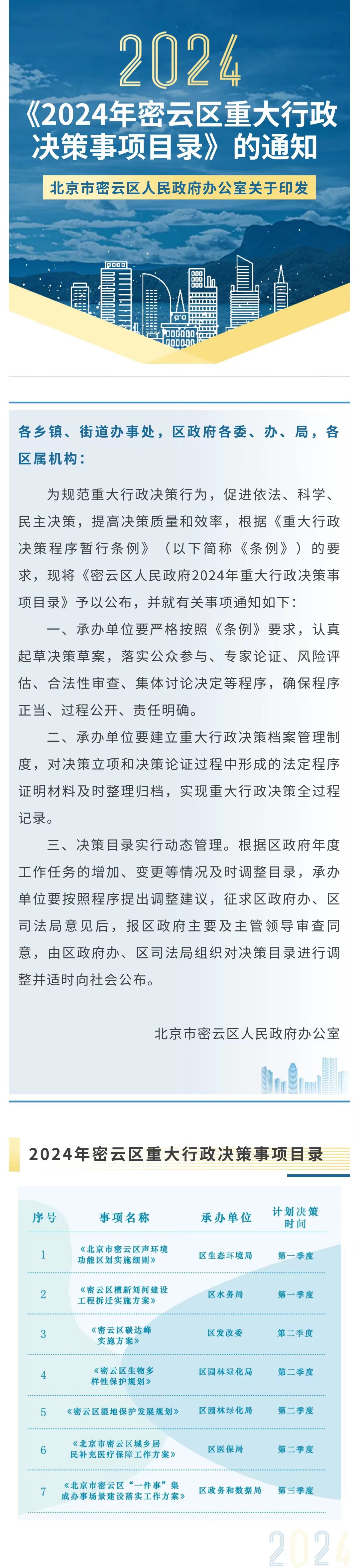 【图文解读】关于《2024年密云区重大行政决策事项目录》的解读