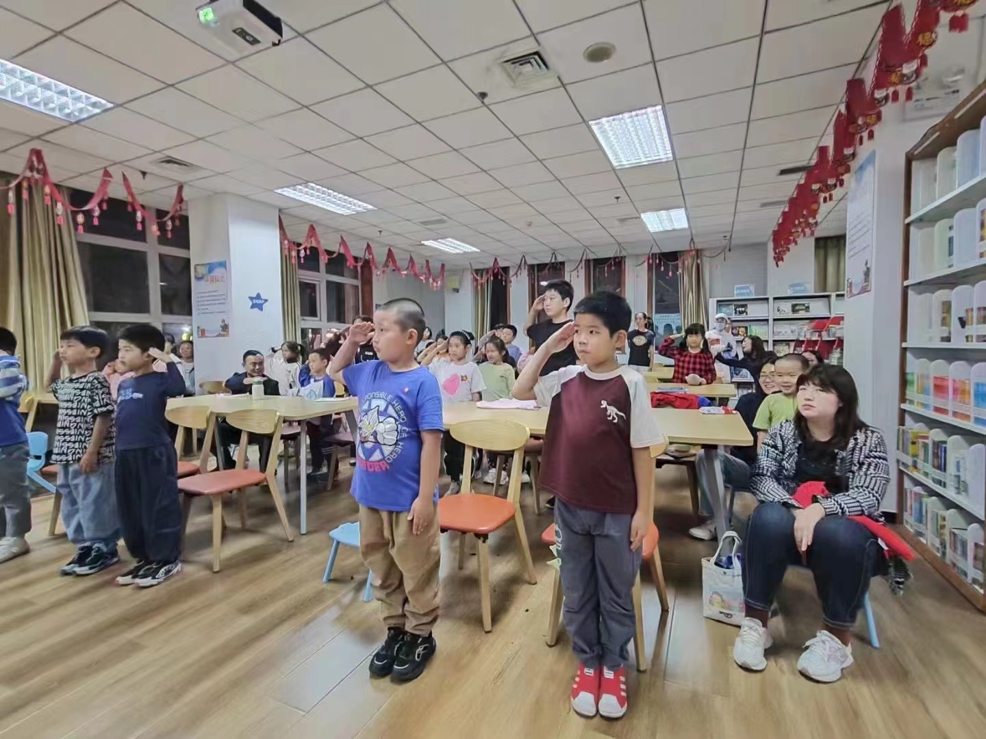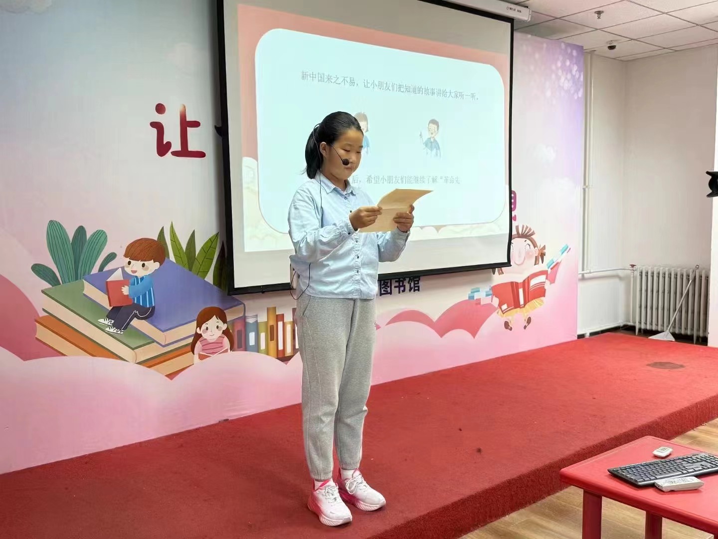活动开始工作人员为小朋友全面介绍我们的祖国母亲,让小读者们全面认识国旗、国徽、国歌。接下来两位小朋友分享了红色故事,通过故事讲述让小朋友们更好的了解了新中国一路风雨走来的不易,幸福生活来源于无数先烈和各行各业人民的无私奉献,增强他们的国家意识和归属感。