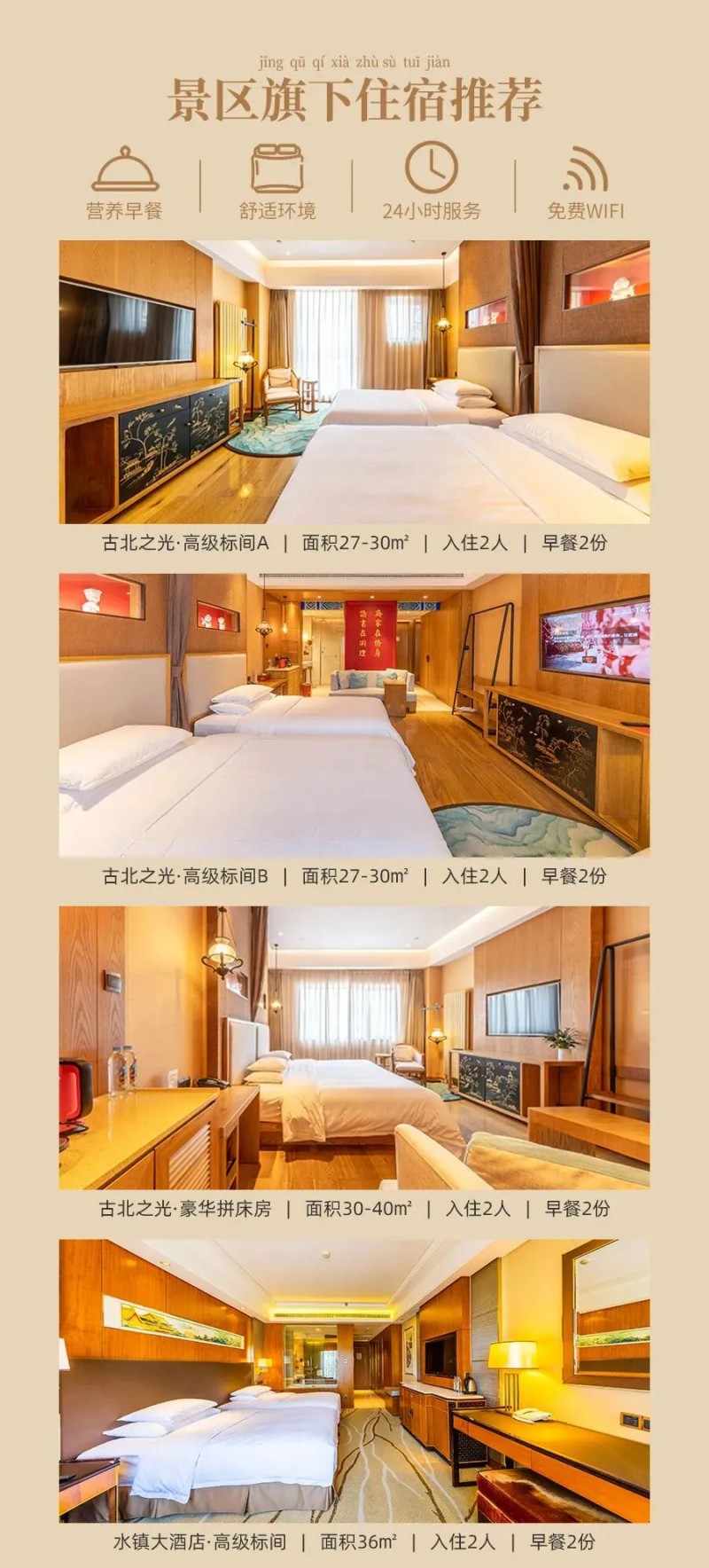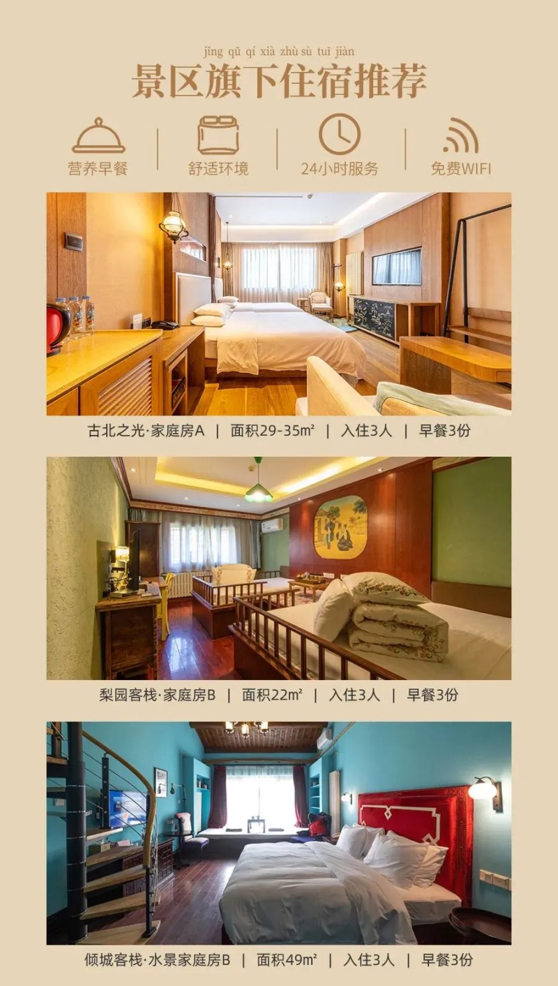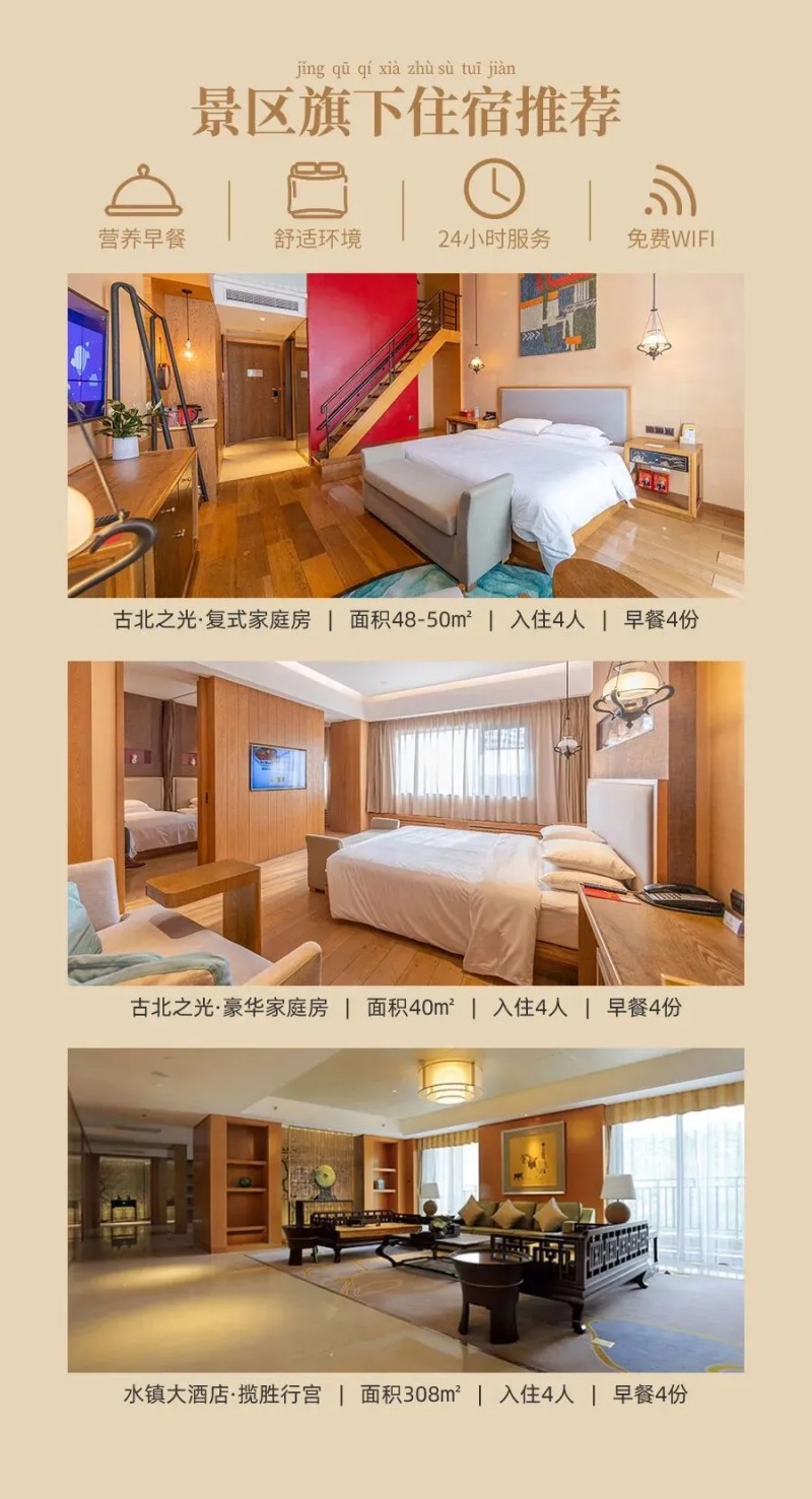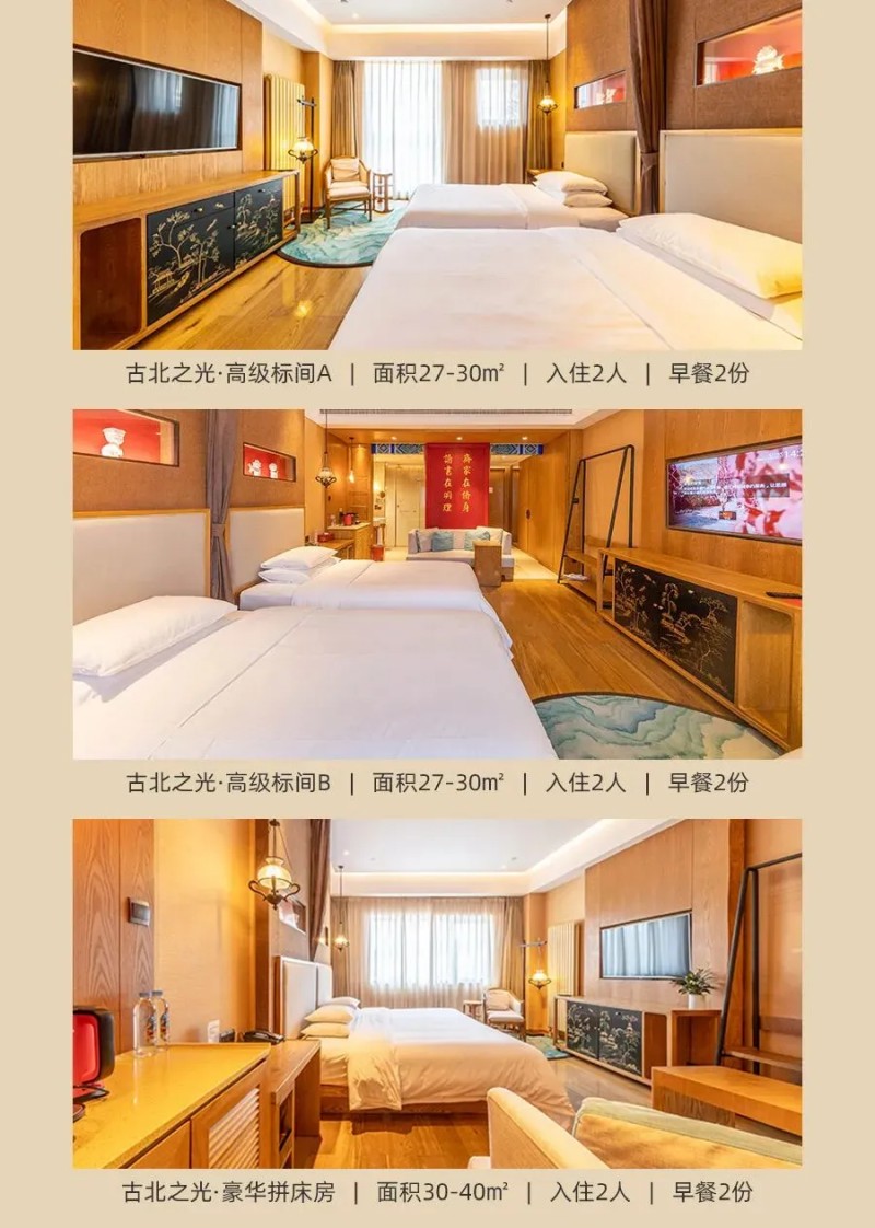 作为小镇中心的标志性存在,古北之光以 “城墙内饰”为灵感,将长城元素融入每一处细节。每间客房均配备双洗漱台、干湿分离卫浴,并赠有矿泉水、咖啡与茶。酒店更配套无边际泳池、儿童游乐中心、花园啤酒吧及多元餐饮,步行即达日月岛广场与千灯会核心区,是集文化体验、亲子度假与节庆参与于一体的理想下榻之所。