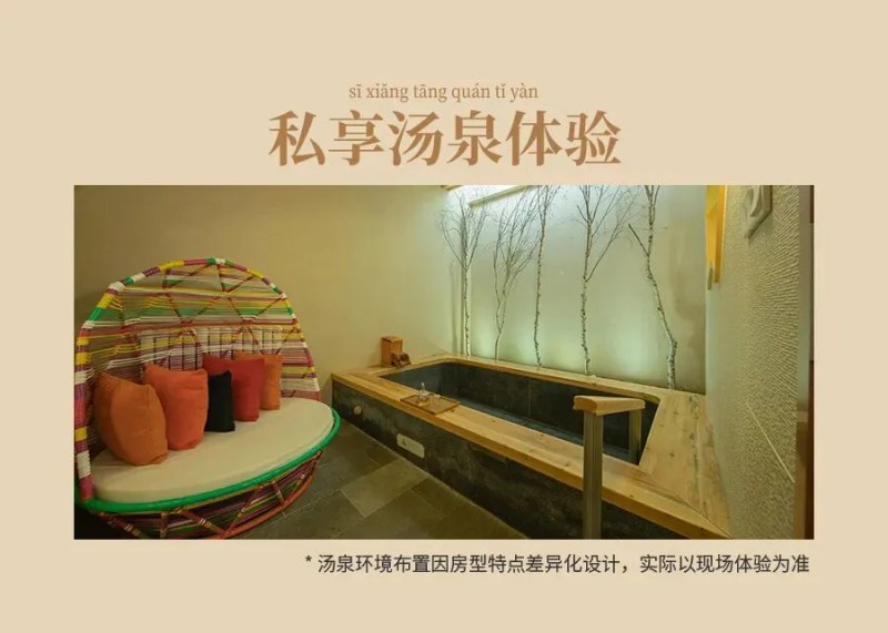 若追求更为专属的秘境体验,十三妹则以“名媛文化”为灵感,为寻求极致静谧的宾客构筑身心结界。每房标配独立汗蒸室与汤泉池/桶,隐身于街巷之中,成为闺蜜私语、爱侣缱绻或一人独享的温暖归处。在这里,私密不再是空间的隔离,而是一种被温暖全然包裹的、从容自在的生活方式。