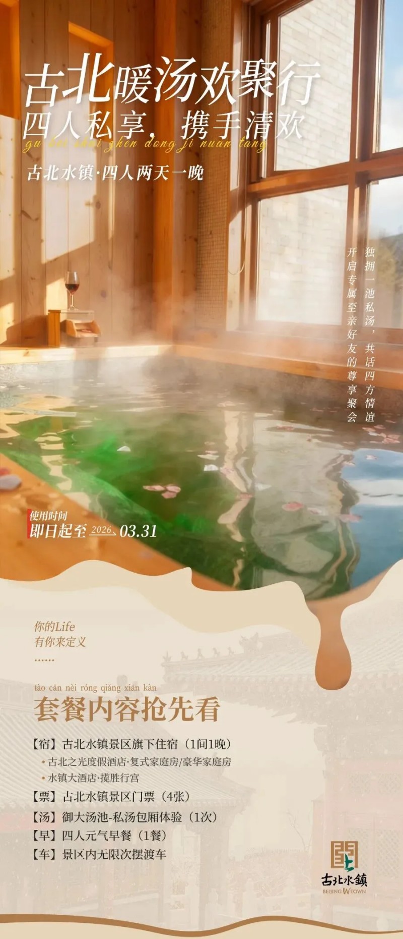 当私密与暖泉成为冬日优选,古北水镇为你准备了两种截然不同的诗意栖居。御舍汤泉酒店在一院一汤中诠释隐逸美学。每间套房均享24小时室内暖汤,于星空下静听长城风吟,独享「不出户,暖意自生」的治愈。