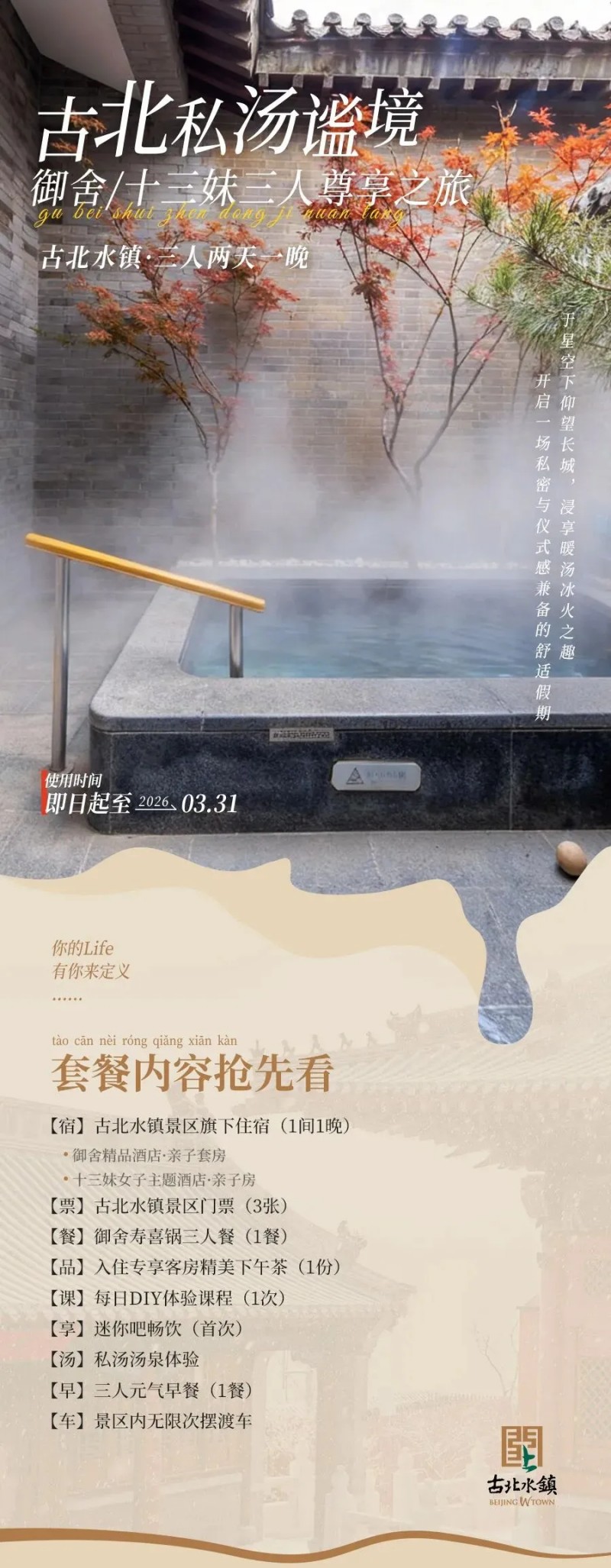 古北水镇以一池温汤为笔,邀你写下新年最柔软的序章。春节来长城脚下的童话小镇,让身心先于春天苏醒。