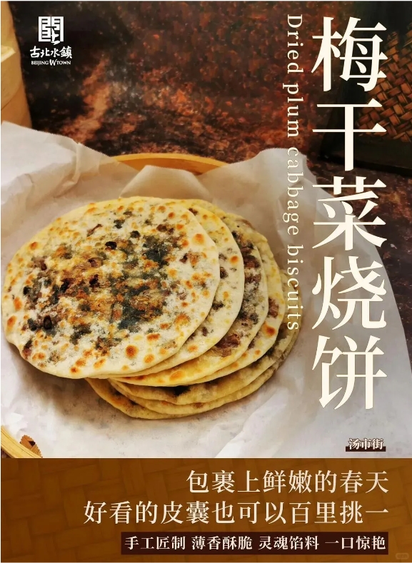 梅干菜烧饼:刚出炉的烧饼外皮金黄酥脆,咬一口掉渣,梅干菜的咸香混合着肉香,趁热吃超满足。