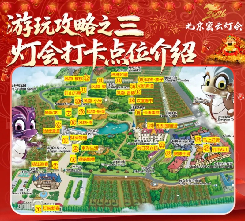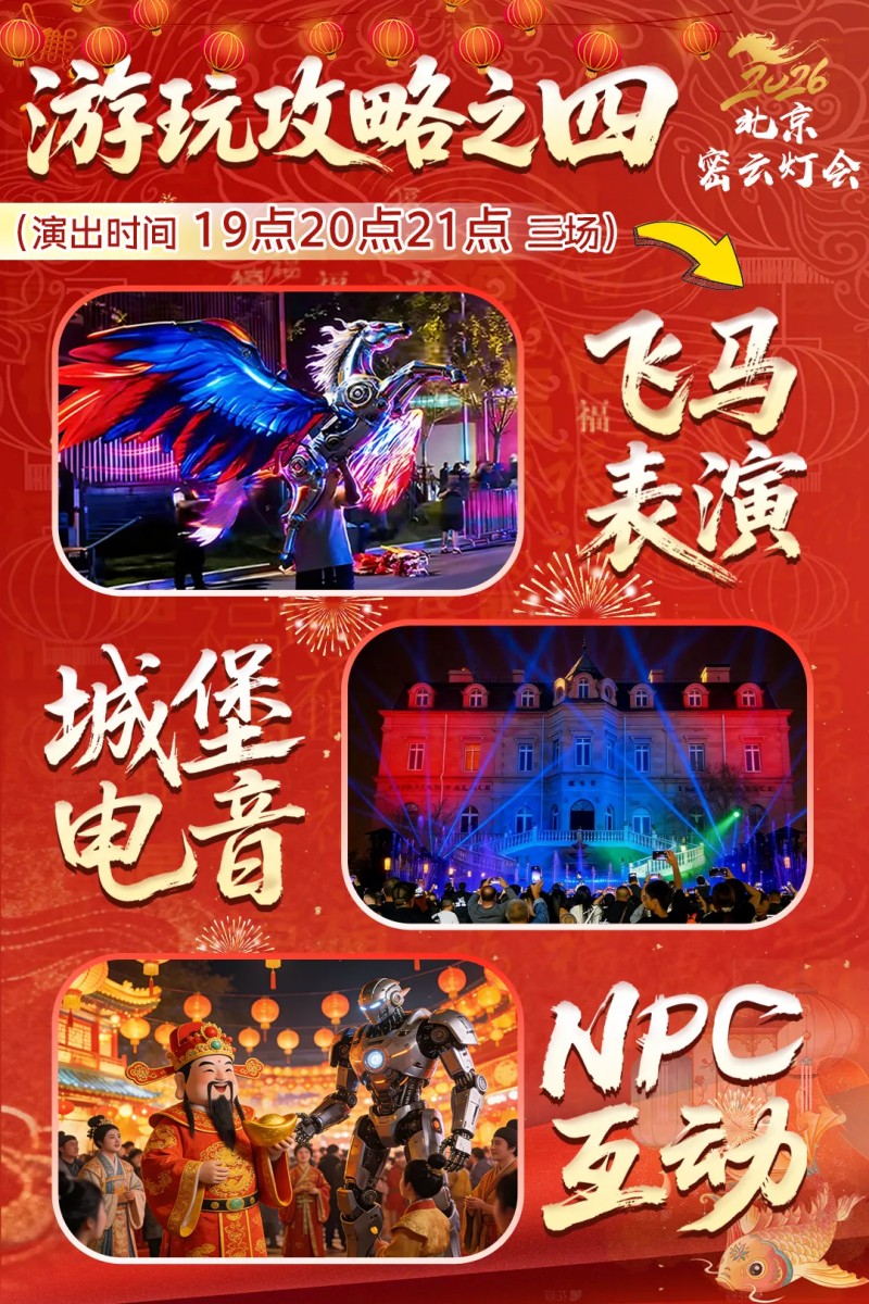 购票指南:抖音、美团、大众点评、携程、同程、飞猪搜索"2026北京密云灯会"即可预订,一票畅玩酒庄参观、灯海、演绎、美食市集!
