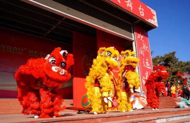 园区内红灯笼长廊蜿蜒错落,生肖主题打卡点遍布各处,中幡、秧歌、舞龙舞狮等绝活轮番上演,精彩亮相。